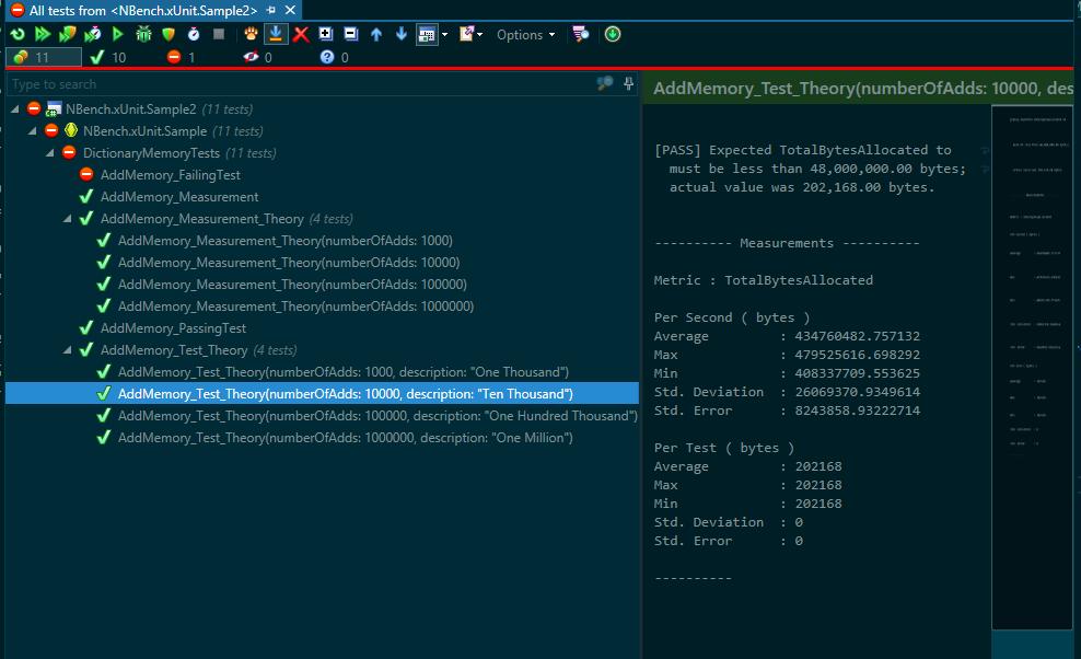 Supports wrapping NBench in both xUnit Facts, and most importantly, Theories, to allow multiple parameters / iterations to be tested. This is achieved via [NBenchFact] or [NBenchTheory] custom attributes.