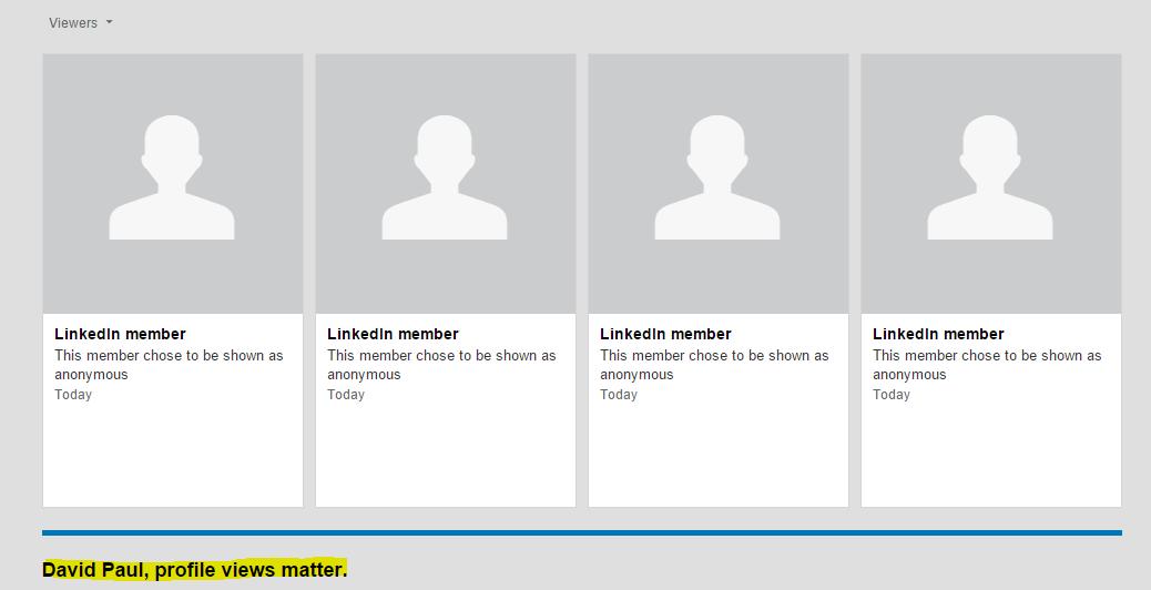 "Profile views matter"... not really, when I have no idea who or what is looking at me. In fact, it is getting a bit ridiculous.
